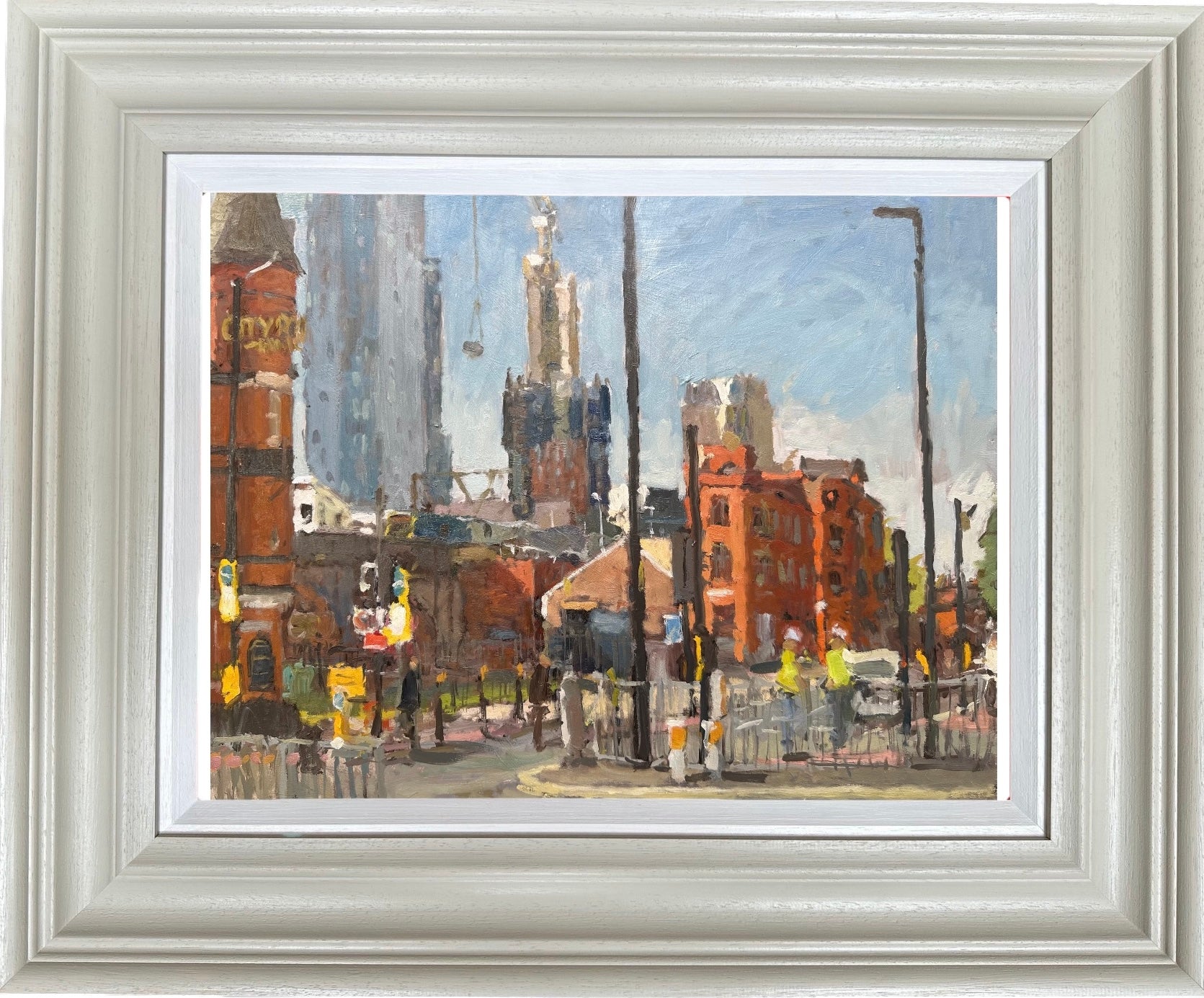 Painted over two goes with a 3 month gap in between. When I came back on it, the central high rise was built even higher. Loads of these rectangular blocks going up just here. The City Road Inn just the left. Painted right outside the Hacienda Apartments. No e’s and wizz, but pot smell everywhere!
